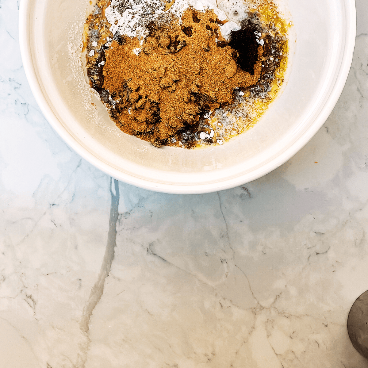 - Add the melted butter with the water to the dry ingredients and stir/use your hands to combine. Make sure the mixture is holding together. If it isn’t, add a little more butter.
