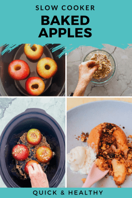 - Firmly press the oat mixture into the centre of the apples until full and scatter the remaining oat mixture around the bottom of the cooker and the water too. Bake for 25 minutes using the pressure cooker function, 7 hours on low or 4 hours on high using the slow cooker setting.