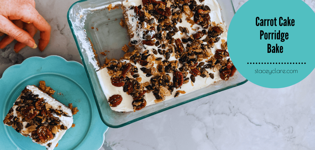 If you’re into porridge, you’re going to love my easy, healthy take on it. Bake it! The ace thing about making a porridge bake is that you’re adding eggs to the mix (hello protein), spices (that’s the flavour) and carrots too – hellooooo veggies and more fibre. It keeps for days and a batch of my healthy carrot cake porridge bake means brekkie is sorted for my crew for 3 days – at least!