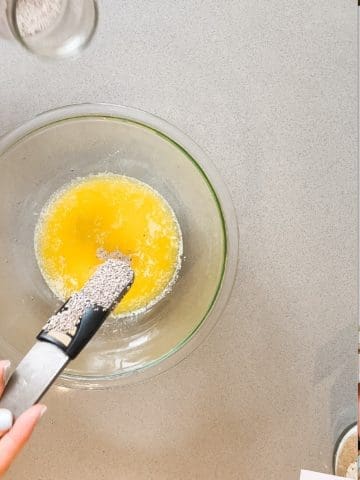 Chia seeds are your secret weapon to getting the Anzac slice to stick together, without the needs for an egg. When I can, I buy the white seeds, that way you don’t see them as much in your cooking.