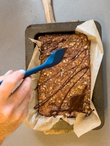 When it’s done, give it a few minutes to cool and then drizzle the chocolate all over. SO YUMMY!