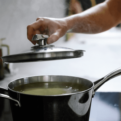 Once the water is boiled, pop in your chicken and bring it back to the boil. For me that is only 1-minute at most.
