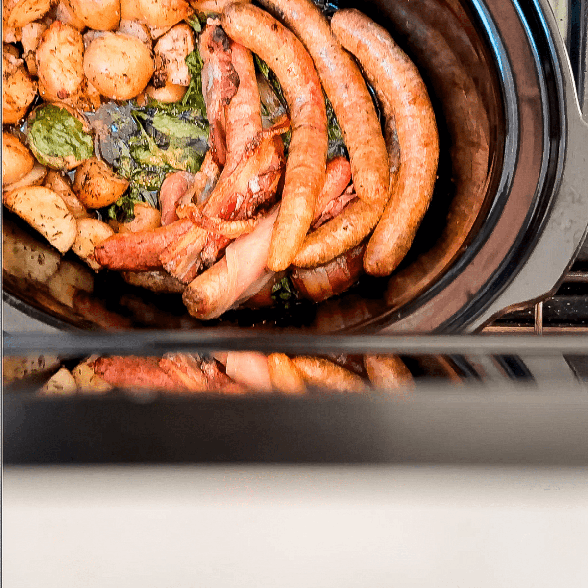 I wrapped bacon around my sausages so they didn’t over-cook
