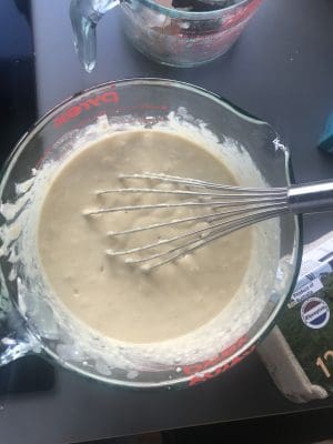 2. Whisk all the pancake ingredients together. If you’re using cassava flour, add an extra 1/4 cup of milk. When there are no lumps left, pour it into your greased pancake tray.